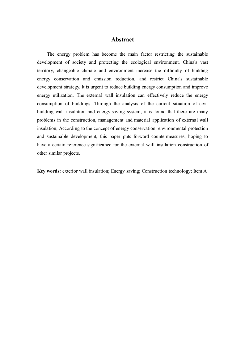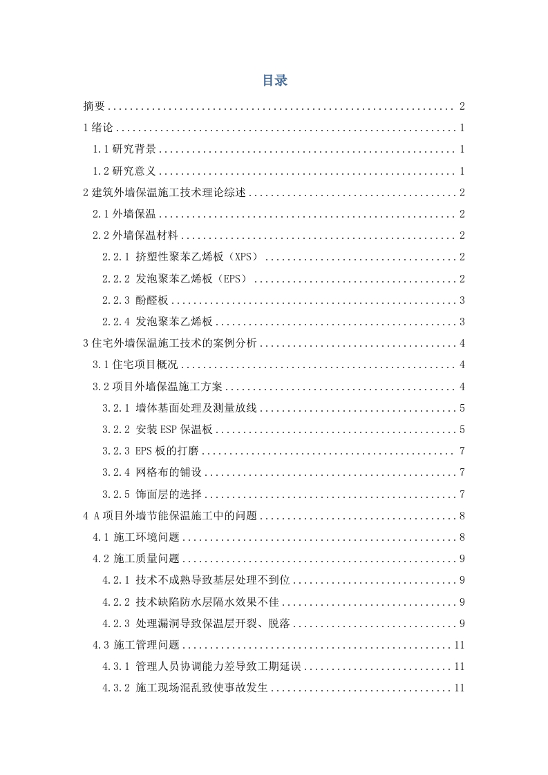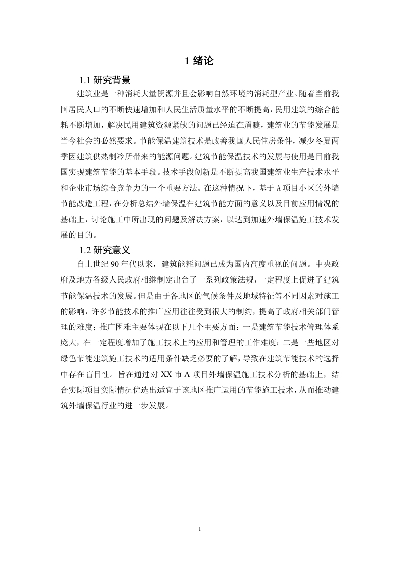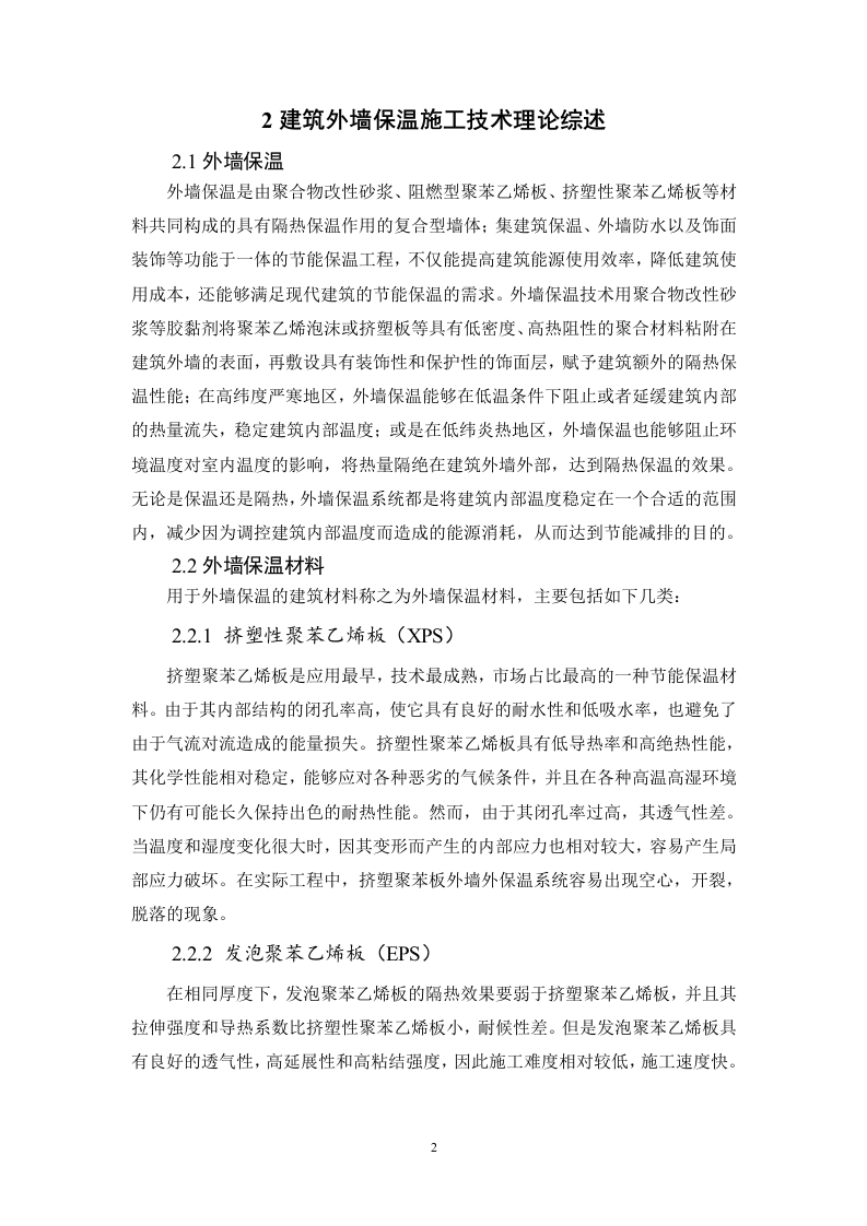 住宅外墙保温结构施工技术应用研究一以A项目为例摘要能源问题已成为限制社会可持续发展和保护生态环境的主要因素。我国幅员辽阔,多变的气候和环境加大了建筑节能减排的难度,制约了我国的可持续发展的战略。减少建筑能耗,提高能源利用率,建筑节能迫在眉睫。而外墙保温可有效减少建筑的使用能耗。通过对民用建筑墙体保温节能系统现状分析,发现项目在外墙保温施工、管理与材料应用之间存在诸多问题:根据节能环保和可持续发展的理念,提出应对措施,希望对其它同类项目的外墙保温施工具有一定的借鉴意义。关键词:外墙保温:节能:施工技术;A项目AbstractThe energy problem has become the main factor restricting the sustainabledevelopment of society and protecting the ecological environment.China's vastterritory,changeable climate and environment increase the difficulty of buildingenergy conservation and emission reduction,and restrict China's sustainabledevelopment strategy.It is urgent to reduce building energy consumption and improveenergy utilization.The external wall insulation can effectively reduce the energyconsumption of buildings.Through the analysis of the current situation of civilbuilding wall insulation and energy-saving system,it is found that there are manyproblems in the construction,management and material application of external wallinsulation;According to the concept of energy conservation,environmental protectionand sustainable development,this paper puts forward countermeasures,hoping tohave a certain reference significance for the external wall insulation construction ofother similar projects.Key words:exterior wall insulation;Energy saving;Construction technology;Item A目录摘要…21绪论......1.1研究背景...1.2研究意义.2建筑外墙保温施工技术理论综述2.1外墙保温22.2外墙保温材料...…22.2.1挤塑性聚苯乙烯板(XPS)2.2.2发泡聚苯乙烯板(EPS).22.2.3酚醛板.………32.2.4发泡聚苯乙烯板....3住宅外墙保温施工技术的案例分析3.1住宅项目概况....3.2项目外墙保温施工方案...3.2.1墙体基面处理及测量放线.53.2.2安装ESP保温板...53.2.3EPS板的打磨.....73.2.4网格布的铺设......。。。。。。。。。。。。1。。。g。。gg。。。。3.2.5饰面层的选择......74A项目外墙节能保温施工中的问题...…84.1施工环境问题4.2施工质量问题.4.2.1技术不成熟导致基层处理不到位4.2.2技术缺陷防水层隔水效果不佳.4.2.3处理漏洞导致保温层开裂、脱落..。4.3施工管理问题.114.3.1管理人员协调能力差导致工期延误....114.3.2施工现场混乱致使事故发生.114.4施工材料问题.……4.4.1材料质量差,局部墙体保温效果不佳.…114.4.2未按设计图示铺贴首层饰面砖,面层破损严重.........125A项目外墙保温施工问题的应对措施.…135.1调整施工方案,避免环境影响.·.....135.2优化外墙保温施工技术.........................135.2.1建筑外墙的基层处理....135.2.2应用复合保温材料...135.2.3面层网格布的敷设......…….145.3完善施工保障制度....·5.3.1加强施工队伍及人员的管理.....145.3.2加强施工现场的防火处理环节...................155.4严格把控材料质量.......155.4.1规范材料采购流程..155.4.2加强材料的现场管理166结语.17参考文献.18致谢.19