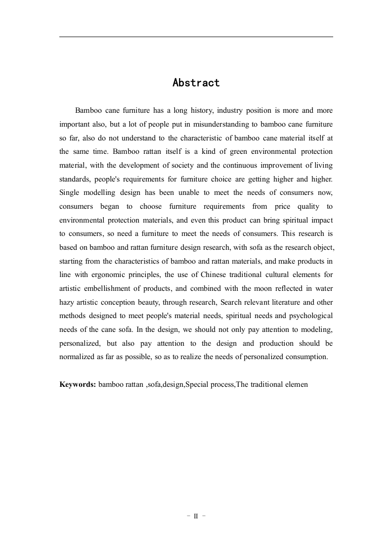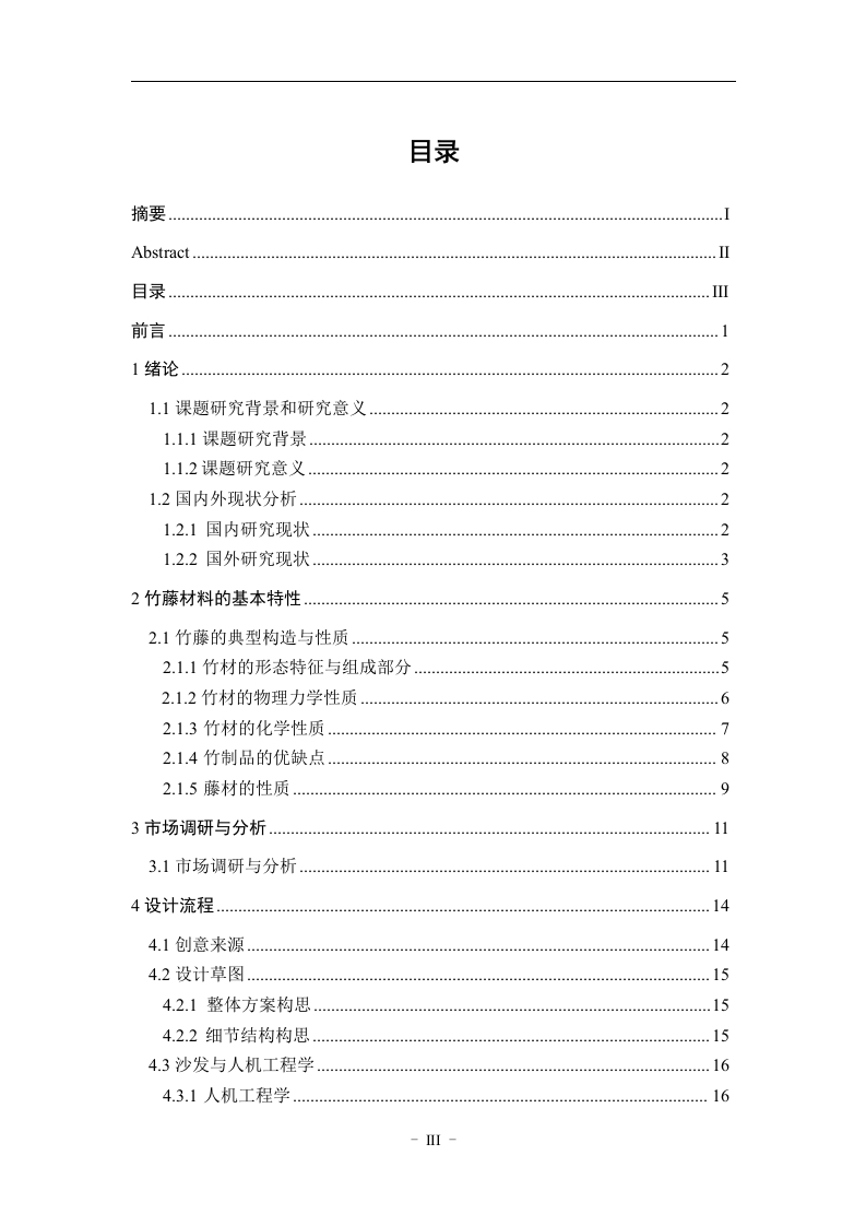 竹藤家具设计研究一一新中式沙发设计摘要竹藤家具历史悠久,行业地位也越来越重要,但就目前为止很多人对竹藤家具都存在误解,同时对竹藤材料本身的特性也不了解。竹藤本身是一种绿色环保材料,随着社会发展和生活水平的不断提高,人们对家具选择的要求也越来越高。单一的造型设计已经满足不了现在消费者的需求,消费者对家具选择的要求开始从价格质量提高为所用材料是否环保,甚至此产品能否给消费者带来精神层面的影响,因此需要一款家具满足消费者的需求。本研究以竹藤家具设计研究为基础,以沙发为研究对象,从竹藤材料的特性出发,并使产品符合人机工程学原理,运用中国传统文化元素对产品进行艺术点缀,并结合水中映月朦朦胧胧的意境美,通过调研,查找相关文献等方法设计出满足人们的物质需要、精神需要和心理需要的藤编沙发。设计中既要注重造型,个性化,同时又要注重设计和制作应尽量规格化,从而实现个性消费的需求。关键词:竹藤,沙发,设计,特色工艺,传统元素AbstractBamboo cane furniture has a long history,industry position is more and moreimportant also,but a lot of people put in misunderstanding to bamboo cane furnitureso far,also do not understand to the characteristic of bamboo cane material itself atthe same time.Bamboo rattan itself is a kind of green environmental protectionmaterial,with the development of society and the continuous improvement of livingstandards,people's requirements for furniture choice are getting higher and higher.Single modelling design has been unable to meet the needs of consumers now,consumers began to choose furniture requirements from price quality toenvironmental protection materials,and even this product can bring spiritual impactto consumers,so need a furniture to meet the needs of consumers.This research isbased on bamboo and rattan furniture design research,with sofa as the research object,starting from the characteristics of bamboo and rattan materials,and make products inline with ergonomic principles,the use of Chinese traditional cultural elements forartistic embellishment of products,and combined with the moon reflected in waterhazy artistic conception beauty,through research,Search relevant literature and othermethods designed to meet people's material needs,spiritual needs and psychologicalneeds of the cane sofa.In the design,we should not only pay attention to modeling,personalized,but also pay attention to the design and production should benormalized as far as possible,so as to realize the needs of personalized consumption.Keywords:bamboo rattan ,sofa,design,Special process,The traditional elemen目录摘要Abstract目录。前言…。1绪论21.1课题研究背景和研究意义21.1.1课题研究背景1.1.2课题研究意义21.2国内外现状分析21.2.1国内研究现状1.2.2国外研究现状.….32竹藤材料的基本特性.…2.1竹藤的典型构造与性质.52.1.1竹材的形态特征与组成部分2.1.2竹材的物理力学性质62.1.3竹材的化学性质2.1.4竹制品的优缺点…2.1.5藤材的性质93市场调研与分析.…。113.1市场调研与分析…4设计流程.….144.1创意来源.144.2设计草图..154.2.1整体方案构思.154.2.2细节结构构思.154.3沙发与人机工程学….164.3.1人机工程学.164.3.2沙发应符合人机工程学..164.3.3沙发尺寸与人机工程学164.4终选方案174.5实物制作流程17总结.19参考文献20致谢.….21附件一展板.22IV-