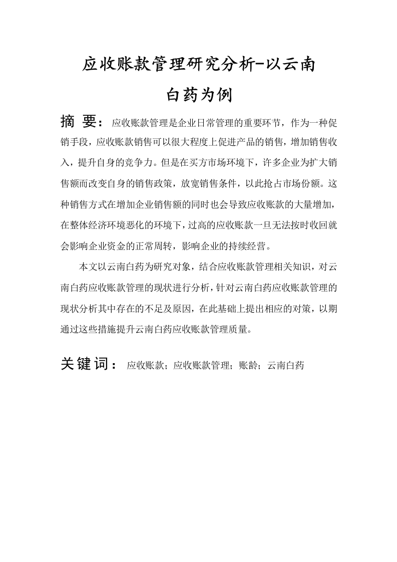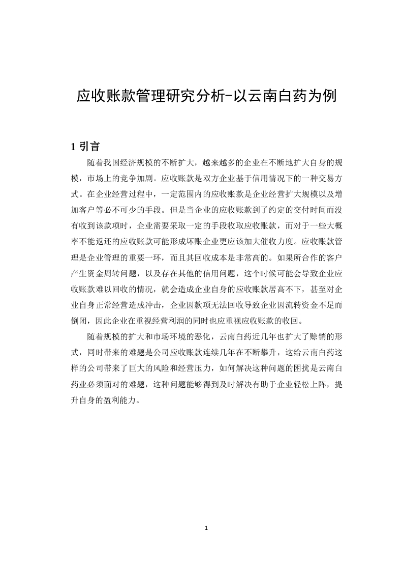 应收账款管理研究分析-以云南白药为例此内容为付费资源,请付费后查看