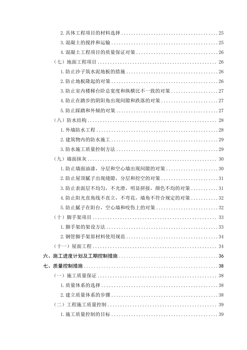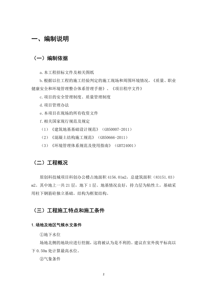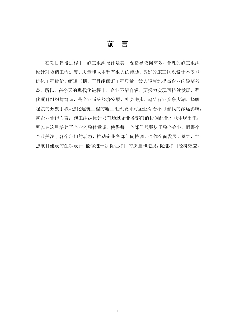 原创科技城项目科创办公楼单位工程施工组织设计摘要【中文摘要】施工组织设计在企业施工管理过程中极为重要,故而本文以原创科技城项目科创办公楼单位工程项目为例,分析施工组织的设计。施工组织的设计基于独特的特征和现场条件,基于项目的特定要求以及项目过程中使用的人力资源,材料,设备,设备等。评估并科学编排后形成的设计文章,该文章综合考虑了时间及空间的具体实情。所形成的文章涵盖的主要内容有:文章编制的根据、标准,工程概览,施工安排情况、项目进出计划及施工过程中其它所涉及到的相关工作内容,根据各分项目的工程特点、难易情况,时间进度及质量规定,形成合理有效的施工方案,进而使施工有据可依并有序有效的完成项目建设,与此同时使工程成本可控,建设高品质的工程项目。关键词:质量:办公楼;施工组织English abstract The design of construction organization is extremely important in theprocess of enterprise construction management,so this paper takes a high-rise building projectas an example to analyze the design of construction organization.The design of theconstruction organization is based on the unique characteristics and site conditions,based onthe specific requirements of the project and the human resources,materials,equipment,equipment,etc.used during the project.A design article formed after evaluation and scientificarrangement,which comprehensively considers the specific facts of time and space.The maincontents covered by the formed articles are:basis,standards,project overview,constructionarrangement,project entry and exit plan and other related work content involved in theconstruction process,according to the engineering characteristics,difficulty and difficulty ofeach sub-project.According to the situation,time schedule and quality regulations,areasonable and effective construction plan can be formed,so that the construction can be basedon evidence and the project construction can be completed in an orderly and effective manner.Key words:administration;office building;construction organization目录前言..一、编制说明2(一)编制依据....2(二)工程概况......2(三)工程施工特点和施工条件1.场地及地区气候水文条件...32.工程施工特点...二、施工准备...5(一)施工现场准备...5(二)施工技术准备..6(三)施工人员准备三、施工总体部署...(一)总体施工顺序..9(二)施工部署原则..91.平面部署原则....2.空间部署原则.........93.总施工顺序上的部署原则..104.资源部署.....10(三)施工组织协调..四、施工现场平面布置….9(一)平面布置原则...12(二)平面布置依据..12(三)各阶段施工平面布置13(四)主要设施布置..131.生产设施布置..132.生活设施布置。。13(五)施工用水..13(六)施工用电..13五、主要施工工艺.14(一)施工测量...141.采用的测量设备……….142.轴线控制..143.施工抄平放线154.测量资料的整理15(二)土方施工.151.施工方式152.开挖..163.基坑支护164.注意事项165.回填土..16(三)钢筋工程171.施工准备...,172.钢筋加工及绑扎183.质量保证措施.......184.成品保护19(四)模板工程....201.基础承台及地梁砖模施工202.墙体模板施工203.框架柱模板施工..204.梁板模板施工.....205.模板拆除21(五)砌体工程..211.工艺流程....212.原材要求,213.作业条件....224.工艺操作......5,质量标准.…….23(六)混凝土工程项目混凝土搅拌泵进行水下混凝土施工。·241.混凝土工程项目的技术措施....2.具体工程项目的材料选择.......253.混凝土的搅拌和运输...............254.混凝土工程项目的质量保证对策.,26(七)地面工程项目.......261.防止沙子筑水泥地板的措施.....….262.防止地板隆起的对策.…,263.防止室内楼梯台阶总宽度和纵横比不一致的对策..........274.防止在踏步的阴阳角出现间隙和跌落的对策............275.防止踩踏和外倾的对策..…,27(八)防水结构......281.外墙防水工程........282.建筑物内的防水施工..,293.防水施工质量控制方法....,29(九)墙面抹灰.……301.防止墙面油漆,分层和空心墙出现间隙的对策...........302.防止屋顶腻子出现缝隙,分层和挖空的对策.......313.防止表面层不均匀,不光滑,明显拼接,颜色不均的对策...314.防止阳光直角线不直立,不弯花,墙角不符合规定的对策.…325.防止腻子在阳台,空心墙和咬伤上的对策.32(十)脚手架项目...·331.脚手架的架设方法。。。。。。。。,332.钢管脚手架原材料使用规范,34(十一)屋面工程....34六、施工进度计划及工期控制措施.....36七、质量控制措施38(一)施工质量保证.·381.质量体系的选择..382.建立质量体系的步骤38(二)工程施工质量控制..391.施工质量控制的目标....39