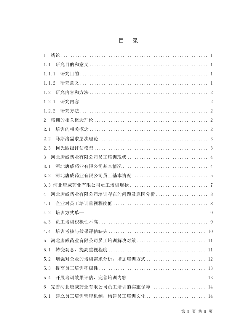 河北唐威药业有限公司员工培训问题优化研究此内容为付费资源,请付费后查看